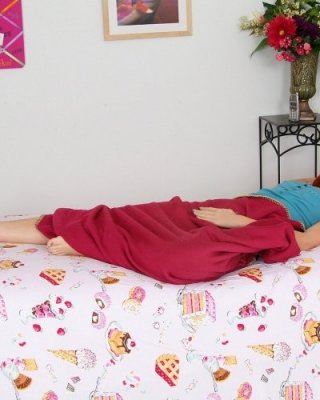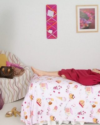 Gorgeous teen redhead gets ready to sleep in the nude