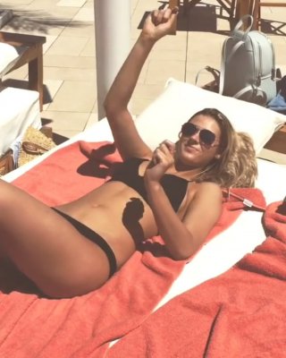 Girlfriend babe with awesome jugs Alex Chance unclothes on couch