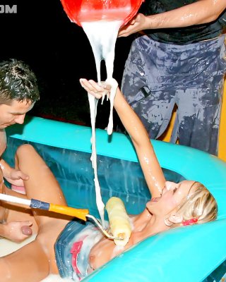 Lustful coeds spend some good time at the pool party in the dorm room