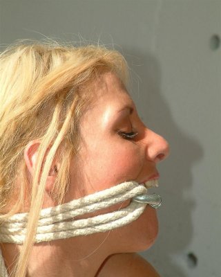 Pretty amateur subbie Lexy is tied up with rope and suspended by