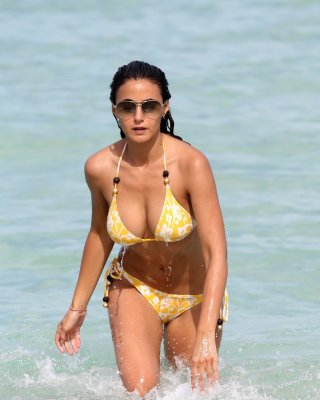 Busty Emmanuelle Chriqui wearing skimpy bikini on a beach in Miami
