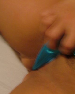 Busty brunette Aleah Jasmine pleasures her horny pussy with her blue friend