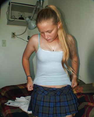 Pretty blonde babe Tracy Delicious stripping and spreading her legs