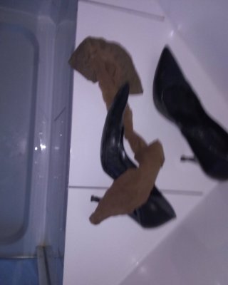 Housewife in high heels and stockings undressing to bare big tits & hot pussy 15