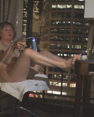 Grandma gets off in the window
