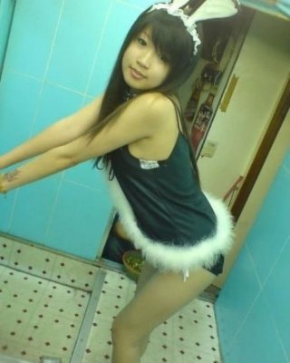Hanh doing cosplay and stripping for the camera in her room