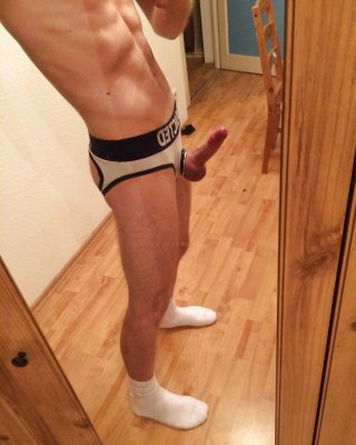 Hard Uncut Cock With White Sox And Jockstrap