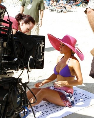 Jenny McCarthy bikini top on set of Allure