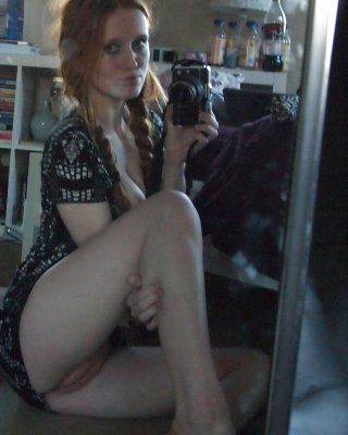 Redhead teen with boots in sauna
