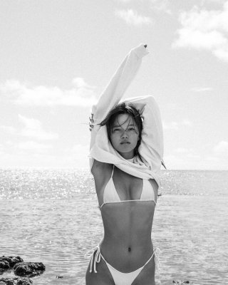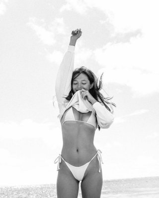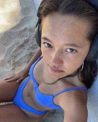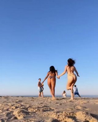 Lily Allen nude perky topless on the beach
