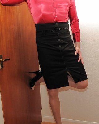 Redhead posing in stockings and heels