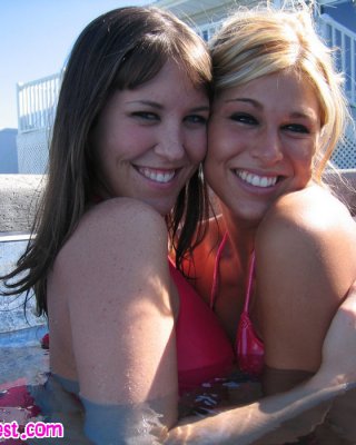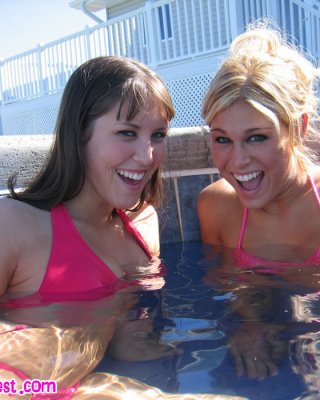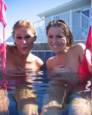 Melissa Midwest and friend in the pool
