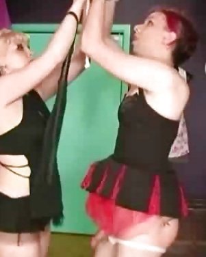 Blonde dominatrix brings in a female sex slave