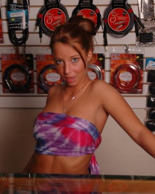 Hot lovely chick shows her tits and cunt