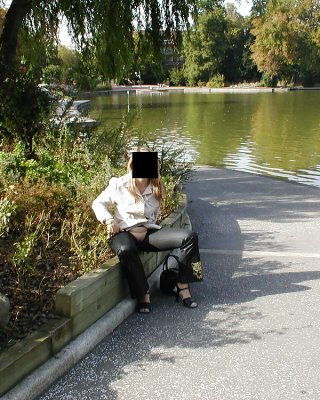 Out shopping In tights trousers and open toe shoes 2