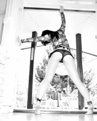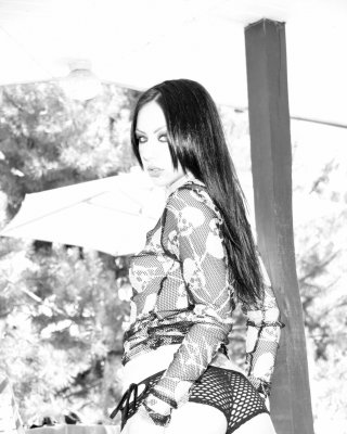 Pictures of Dawn Avril showing off in black and white
