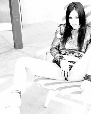 Pictures of Ann Marie Rios masturbating in black and white