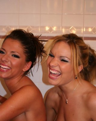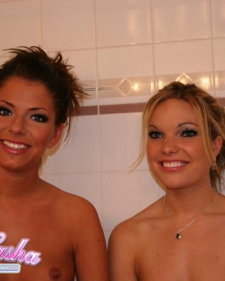 Pictures of Chloe Love getting oiled up with her lesbian teen friend
