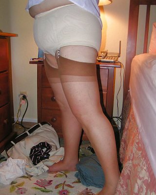 Sissypants wearing her pretty garter-girdle and stockings