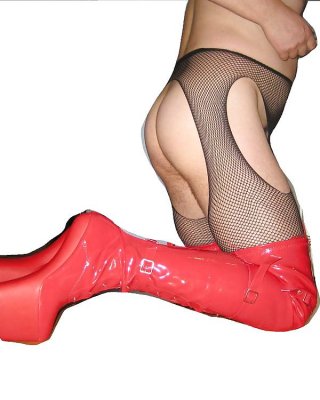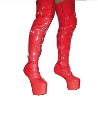 Long legged hottie in red leather boots fondles her pussy and ass