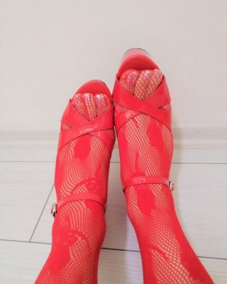 Red Fishnets & Platform Heels