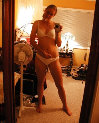 18 year old blonde teen Ash Hollywood taking nude self shots in mirror