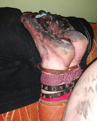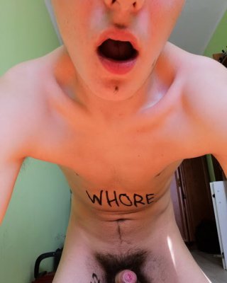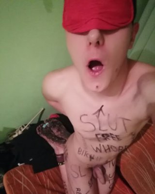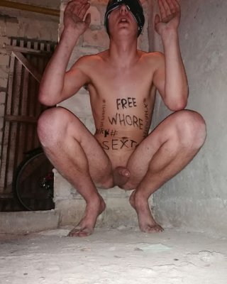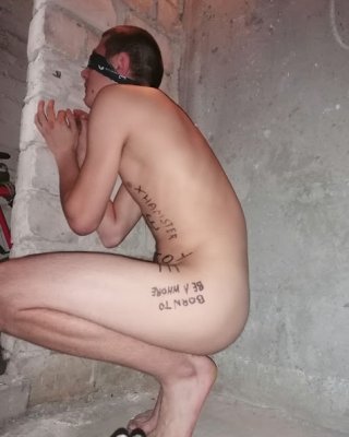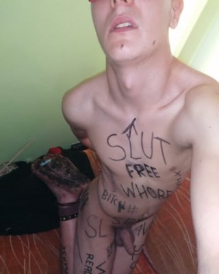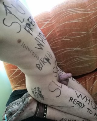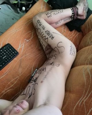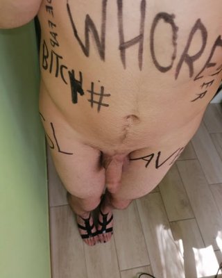 Slave body writing in dirty basement. Humiliation comment