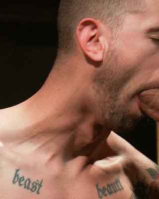 Spencer Reed ties up and fucks two slave boys during a live show