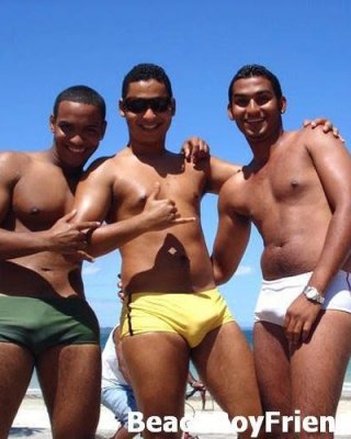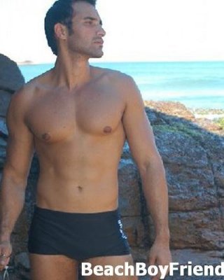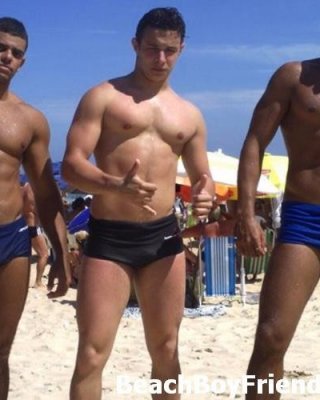 Super sexy and teasing hunks in trunks on the beach