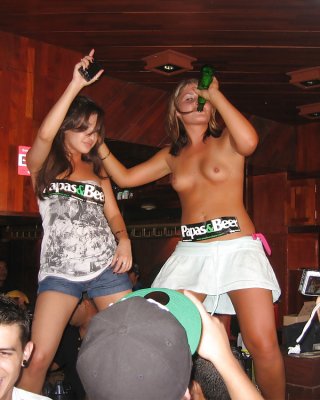 Teen brunette flashing in a pub