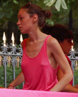 Cute teen sneaky public flashes in busy tourist area