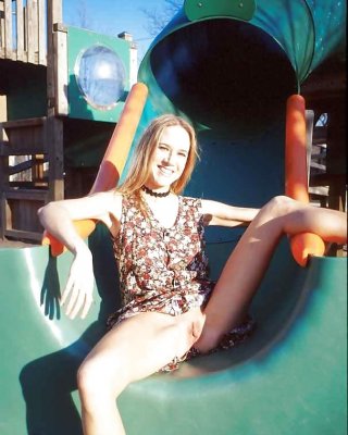 Melissa Midwest naked playing at the playground