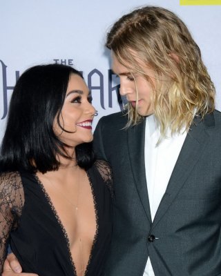 Vanessa Hudgens braless showing big cleavage at the Gimme Shelter photocall in P