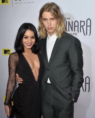 Vanessa Hudgens braless showing deep neckline and legs