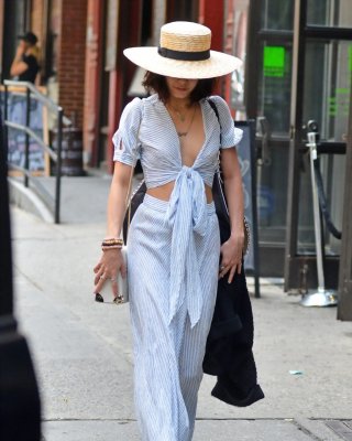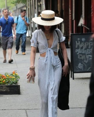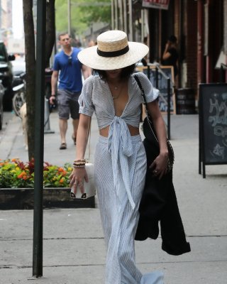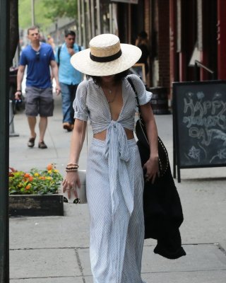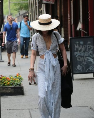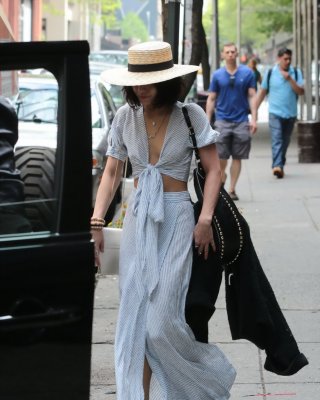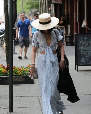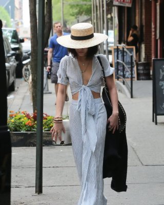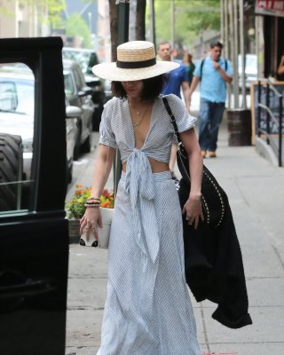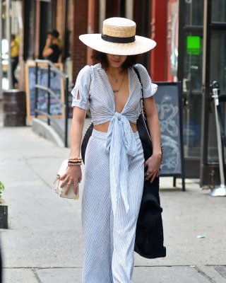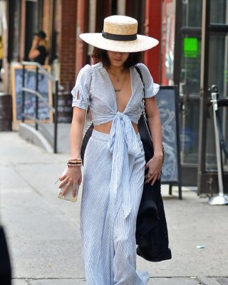 Vanessa Hudgens braless showing huge cleavage and abs while leaving her apartmen