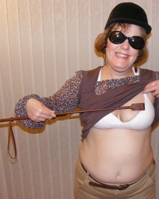 Mistress K in boots with riding crop