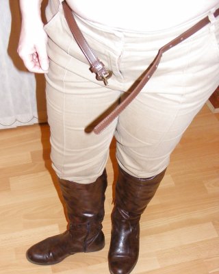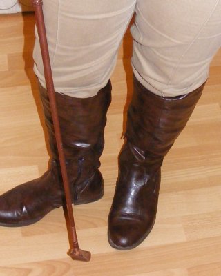White knickers, boots, and riding crop