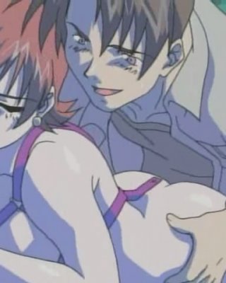 Blonde anime cutie with big perky titties spreads her soft thighs